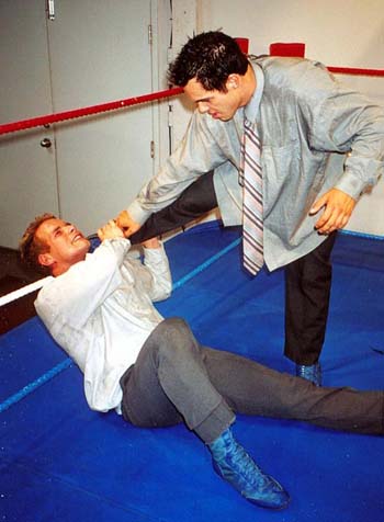I have to kick his ass in the wrestling ring to get promoted, that's fine